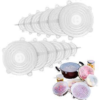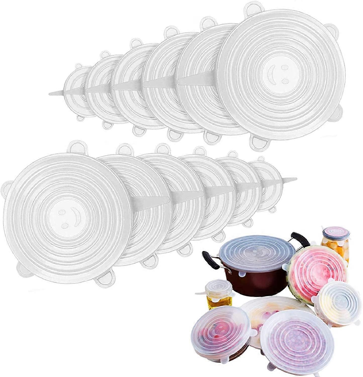 12 Pack of Various Sizes BPA-free Silicone Stretch Lids Reusable Container Lids Food Covers, Flexible to Fit Multi-Shapes of Containers, Microwave & D