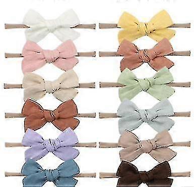 12 Pack Baby Girls Nylon Headbands Linen Hair Bows Hairbands Handmade Hair Accessories For Newborn Infant Toddlers Kids