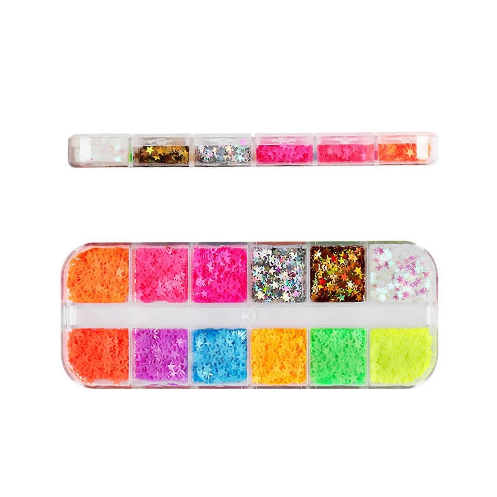 12 Grids/box Stars Glitter Nail Art Sequins Creative Holographic Nail Art Glitter Sequins For Nail Art Beginners Practice