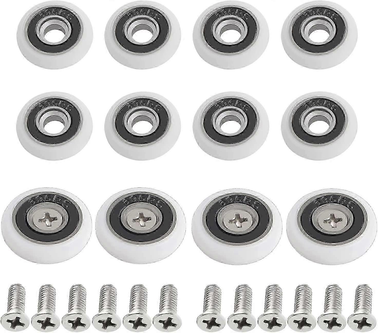 12 Sets Shower Door Wheels, Replacement Rollers for Bathroom Glass Door Runners (23mm & 25mm)