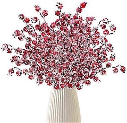 12PCS Christmas Artificial Red Berry Picks, Snow Tipped Berry Branches Holly Frosted Berries Branches for Christmas Tree Home Holiday Wedding DIY Craf