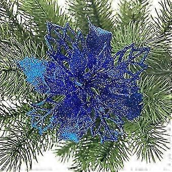 12 Τεμάχια Glitter Χριστουγεννιάτικο Δέντρο Διακόσμηση, Στολίδι Χριστουγεννιάτικου Δέντρου Διακόσμηση Χριστουγεννιάτικου Λουλουδιού, Μενταγιόν Χριστουγεννιάτικου Δέντρου (Λουλάκι, 24 cm)