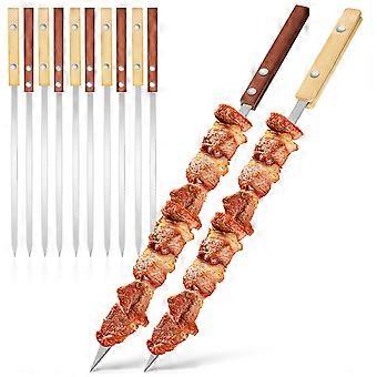 12 Pcs Turkish Skewers with Wooden Handles Stainless Steel Kebab Skewers for BBQ