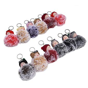 12 Pcs Pom Pom Fluffy Baby Doll Keychains 11cm Plush Charms
