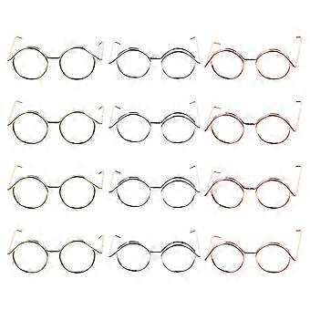 12pcs Mini Doll Eyeglasses with Copper Wire Frames, Lensless Glasses for DIY Doll Accessories in Rose Gold, Silver, and Gold for Imaginative Play and