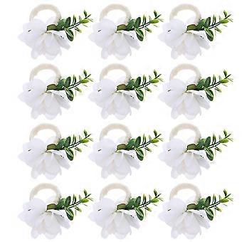 12pcs Artificial Flower Napkin Rings With Greenery Leaves Rustic Floral Serviette Buckles For Halloween Wedding Party Xmas Dining Table Farmhouse And