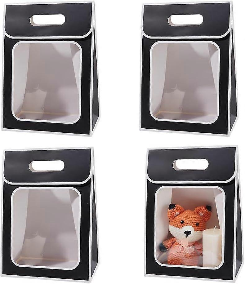 12 Pcs Kraft Paper Bags with Window Stand Up Paper Bag with Handles 8.5x5x11.8 Inch Folding Bag for Candy Cookies Packaging Wedding Store Retail Black