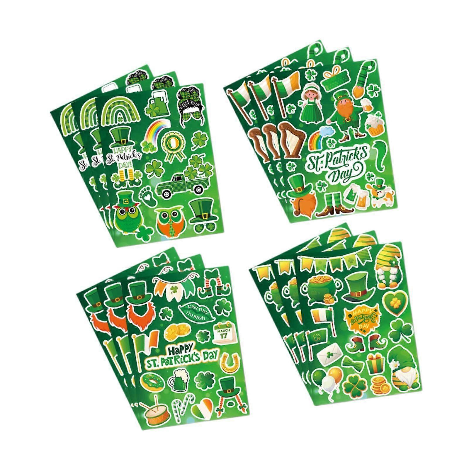 12 Sheets ST. Patrick's Day Stickers Gifts for Water Bottles Album Surfboard