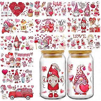 12 Sheets of Valentine's Day UV DTF Cup Wrap Transfer Sticker, Valentine's Day Rub on Transfers Sticker for Furniture Waterproof Decals for Cups DIY C