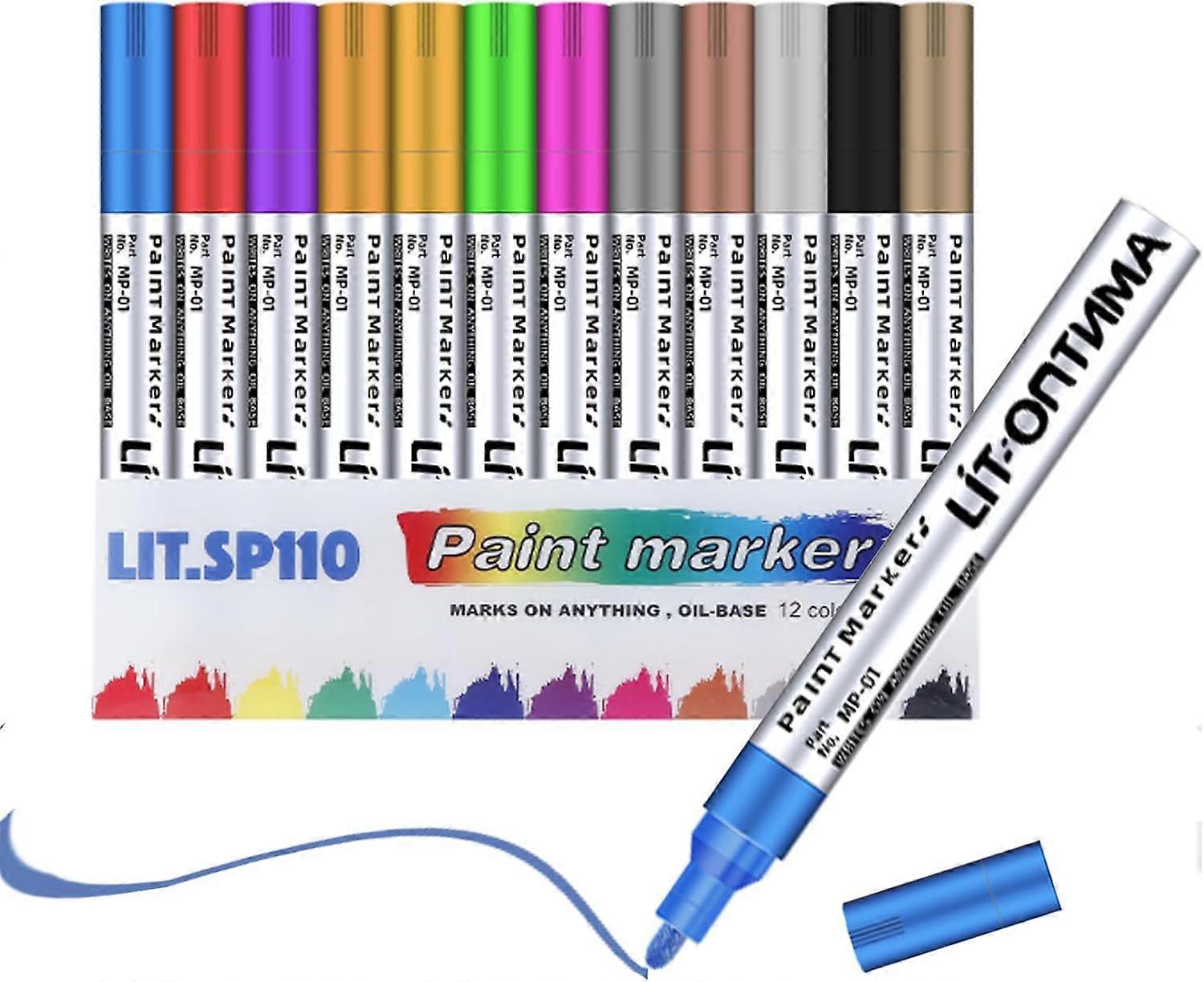 12 Colors Permanent Acrylic Markers Painting Art Markers for Stones Glass Wood Ceramics Plastic Textiles
