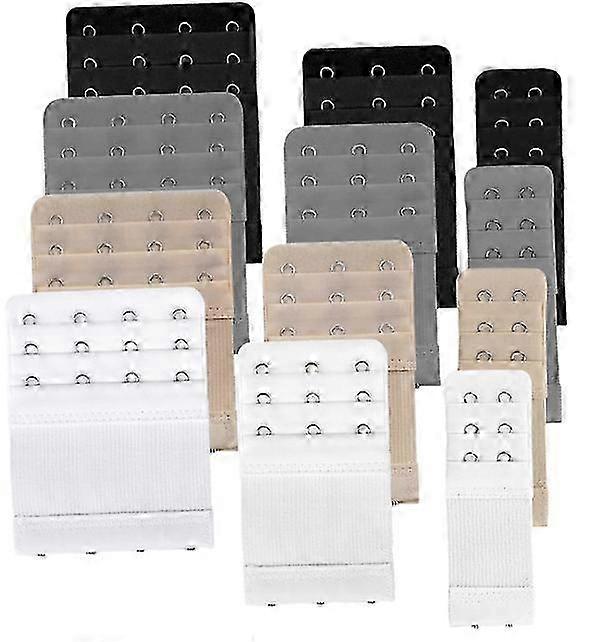 Bra extenders 12 pieces 10 * 3.2cm/10 * 5.7cm/10 * 7.7cm black white off-white gray polyesterm