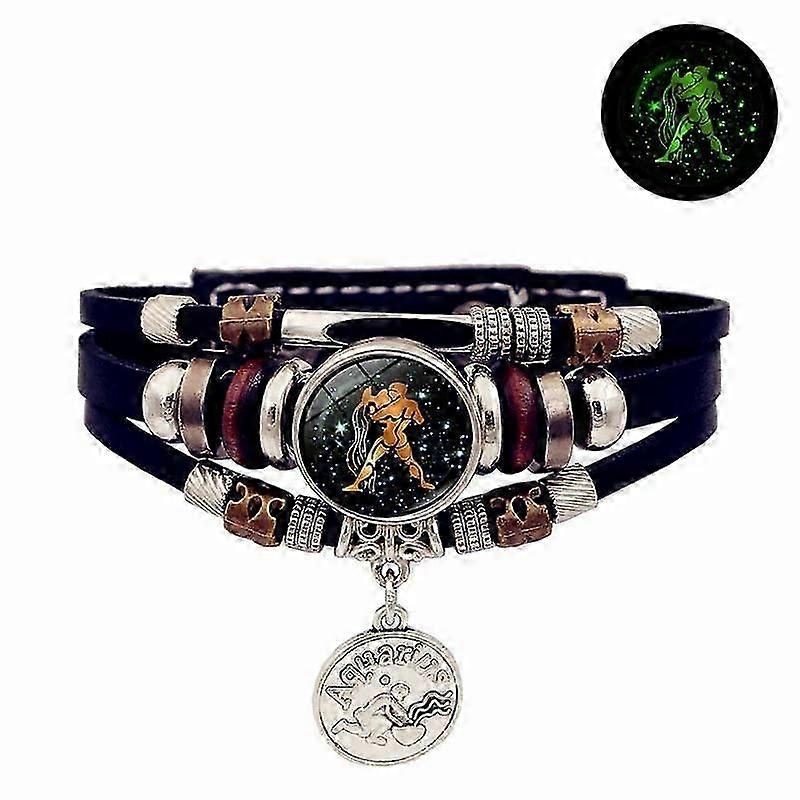 12 Constellation Glow-in-the-Dark Leather Bracelet for Men & Women