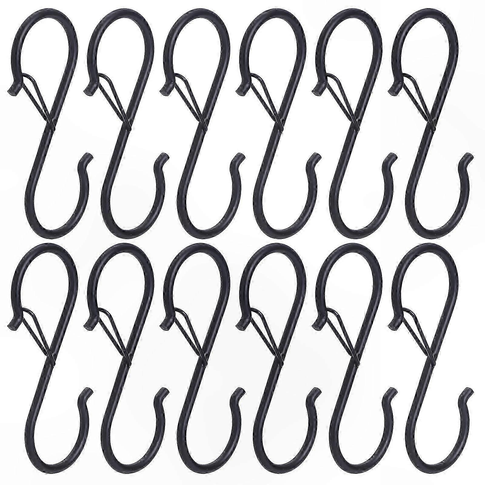 12-Pack Durable S-Hooks with Safety Lock for Hanging Clothes and Towels White Metal Hangers for Home Organization