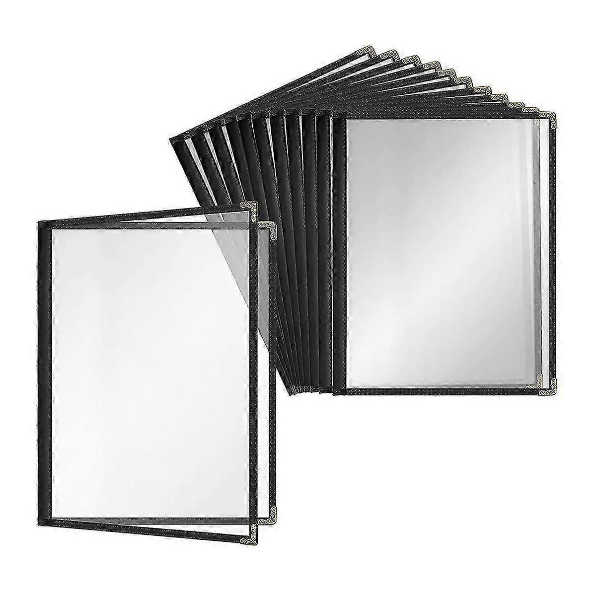 12 Pack Cafe Style Cover, Double Edge, Vinyl (Black, 2 Pages/4 Views - 8.5 Inch X 11 Inch)