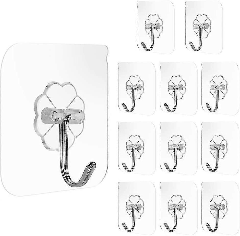 12 Pcs Transparent Sticky Hooks Self-adhesive Nail Free Hooks Reusable Clear