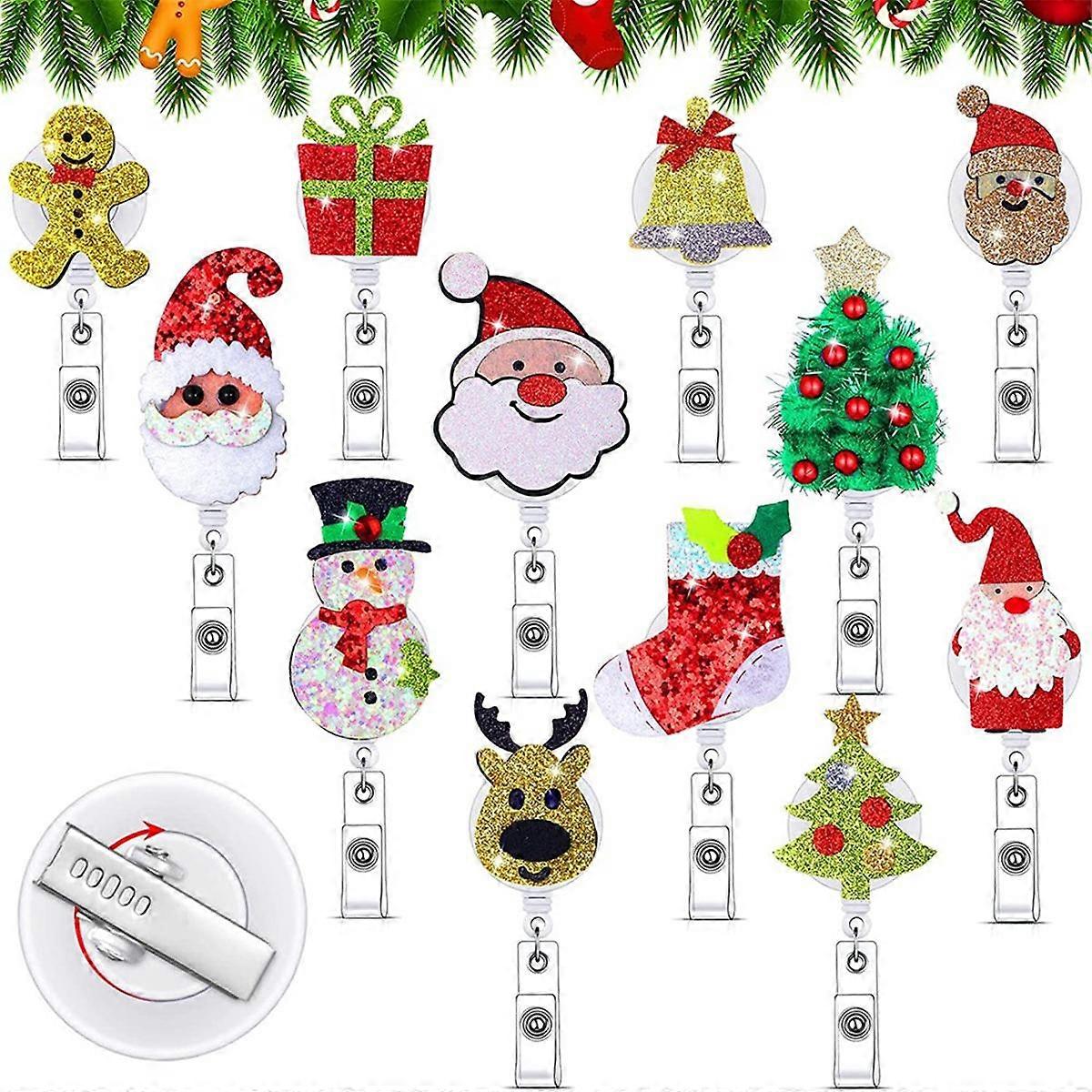 12 Pcs Christmas Badge Reel Felt Badge Holder,for Nurse Teacher Doctor Women Men Office Stocking St