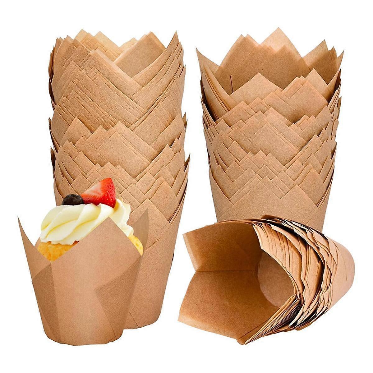 120 Counts Natural Tulip Cupcake Liners for Baking Cups, Parchment Paper Muffin Liners Holders, Tul