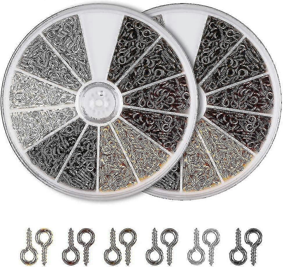 1200pcs Eyelet Screw Eyelets Screw Hooks Screw Rod Metal Eye Screw Ceiling Hooks For Jewelry Making Diy Craft Beading, 6 Colors, 8mm*4mm A