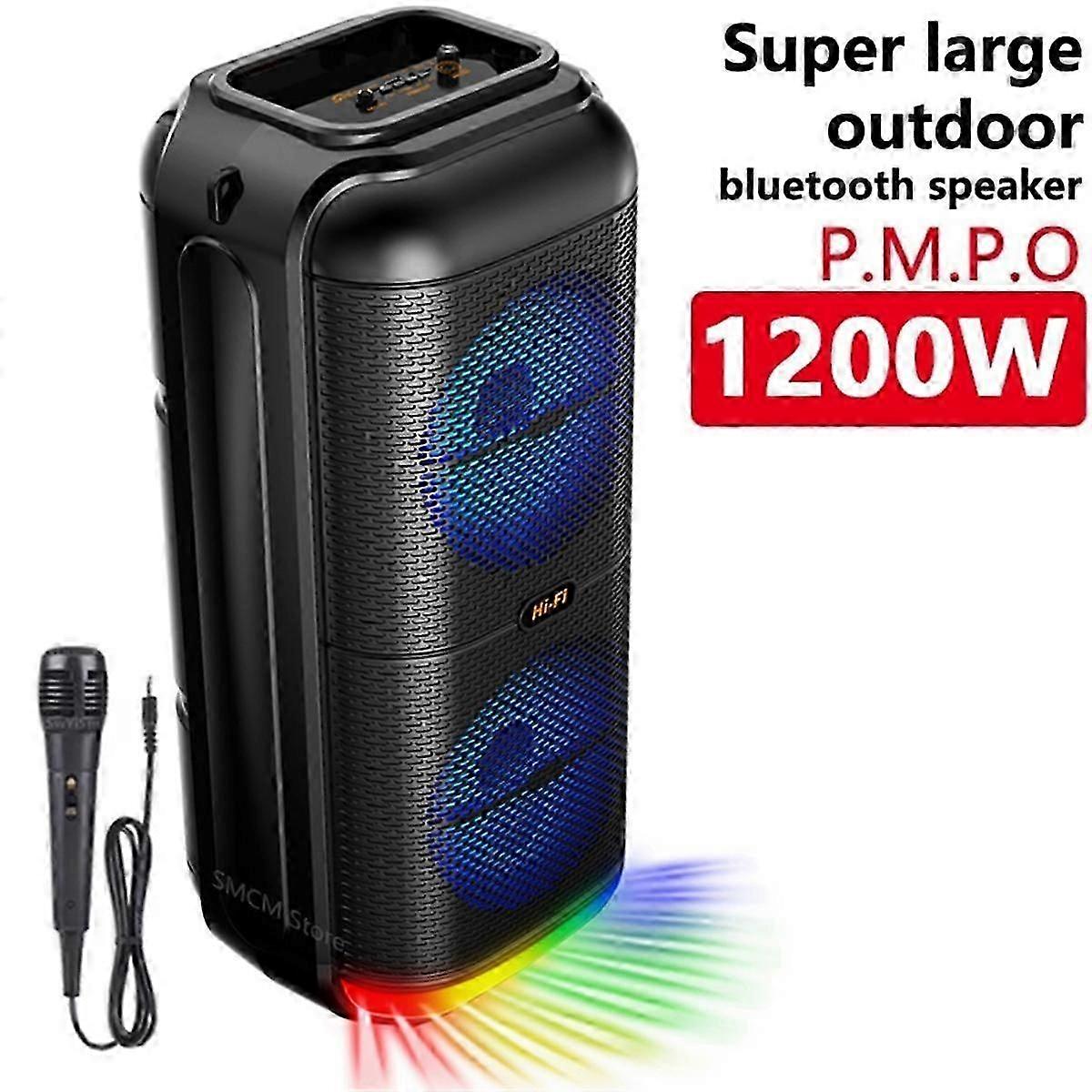 1200W Super Large Outdoor Bluetooth Speaker 6 Inch Double Horn Subwoofer Portable Wireless Column Bass Sound with Mic