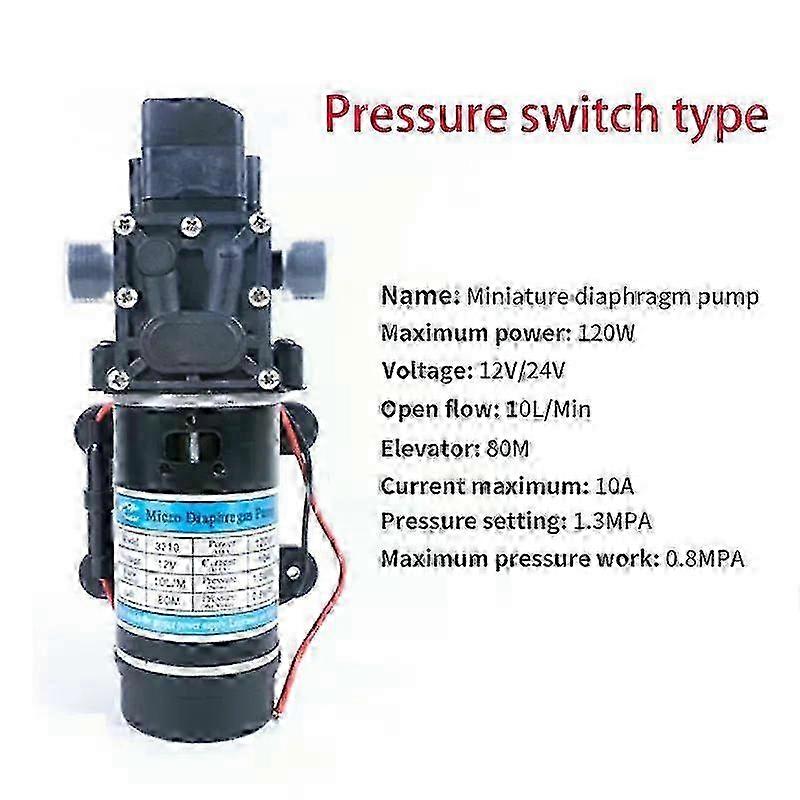 120W 130PSI 10L/Min High Pressure Electric Diaphragm Self-priming Pump Sprayer DC Pressure Type Switch Reflux Type Switch