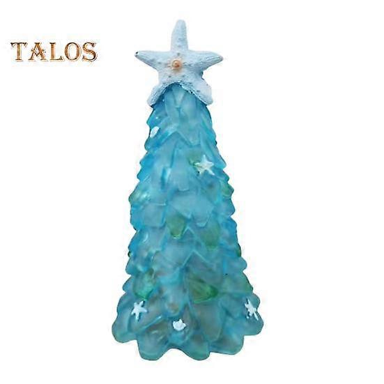 12/15/20CM Seaglass Christmas Tree Decoration Blue Green Sea Glass Starfish Shell Ocean-themed Xmas Tree Figurine Holiday Resin Tree Desktop Ornament