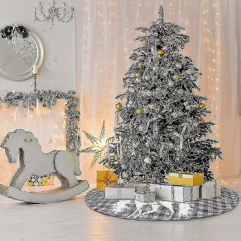 122cm Christmas Tree Upe Checkered Double Layer Snowflake Reindeer Christmas Tree Mat For Home Party Holiday Decoration