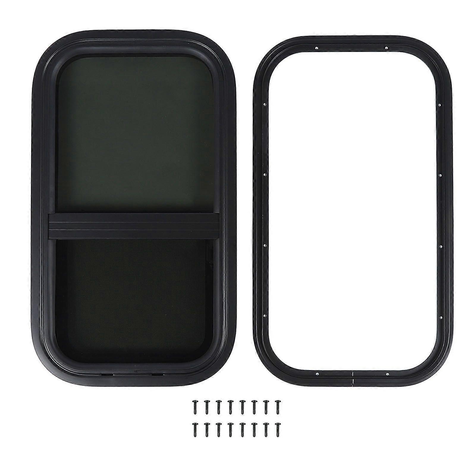 12.2x22.36in RV Window Vertical Sliding With Removable Fly Net Tempered Glass Aluminum Alloy Rounded Corner Waterproof for Camper Trailer