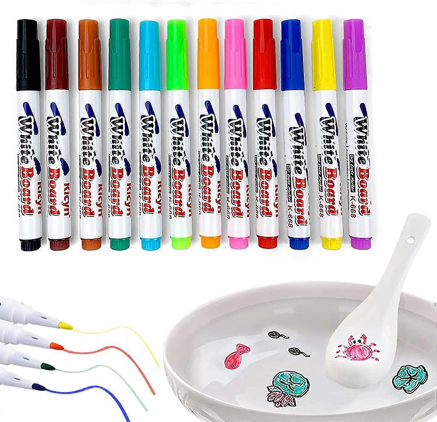 12Colors Magical Whiteboard Pens Water Floating Erasable Painting Pens Washable Dry Erase Marker Doodle Pen Funny Interesting Drawing Pen for Kids Chi