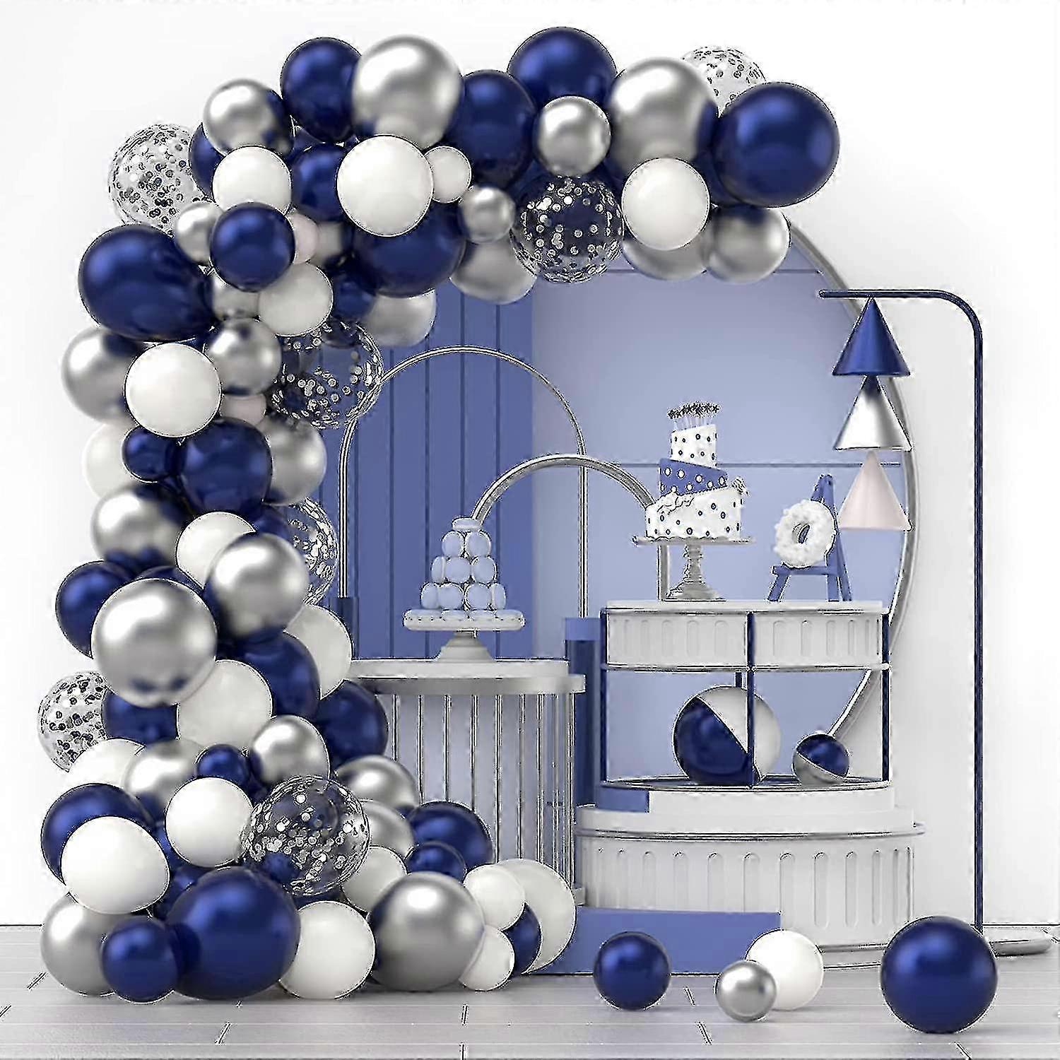 12in 10in 5in Latex Balloons Garland Arch Kit in Navy Blue Silver White for Birthday Wedding Decor