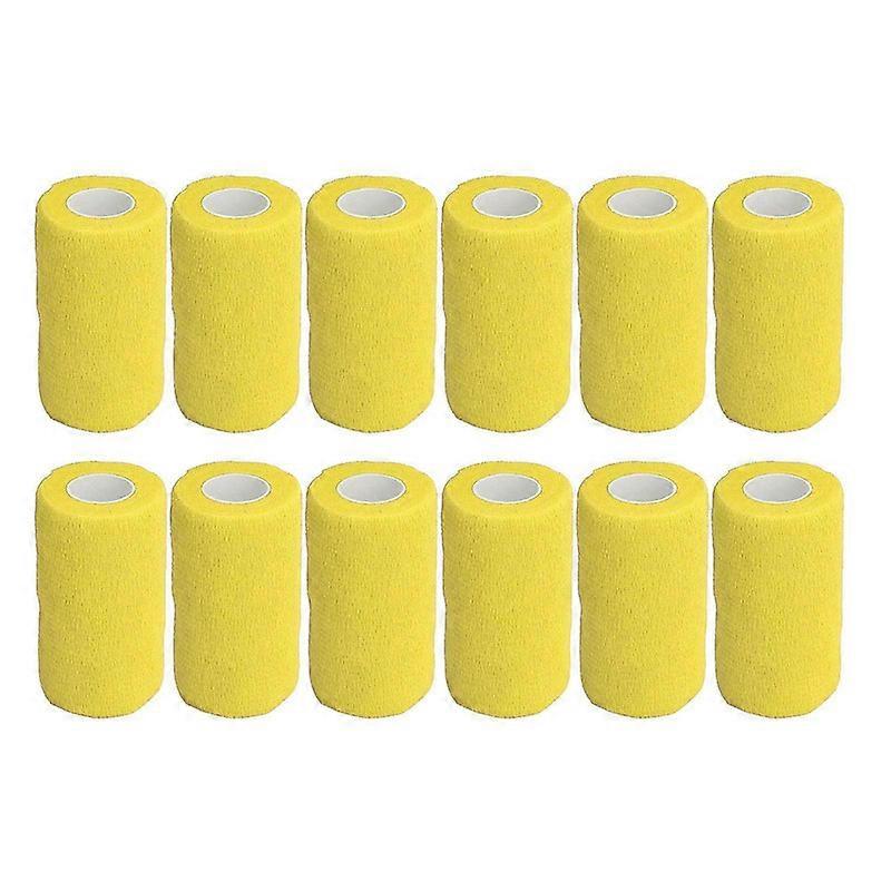 12Pcs Bandage Wrap Natural Latex Elastic Self Adhesive Wrap for Cows Dogs Horses 10cm Yellow
