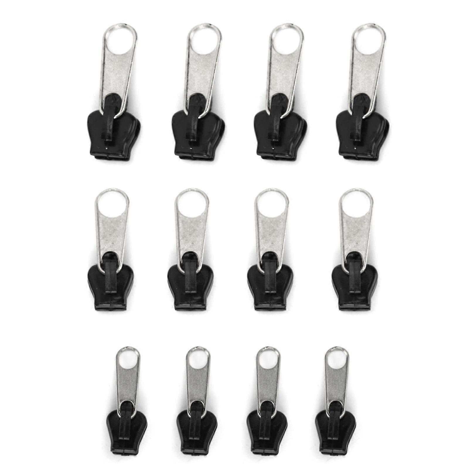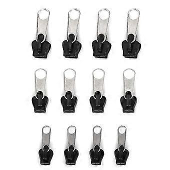 12pcs Universal Zipper Head Repair Kit Replacement For Diy Jackets Jeans Trousers Coats Walletsblack
