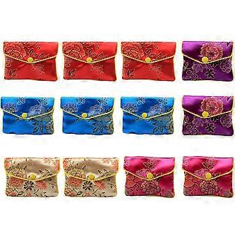 12Pcs Chinese Style Silks Satins Jewelry Bag Wedding Gift Bag Party Decoration Bag (Random Color)