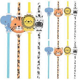 12pcs Cartoon Animal Straws Party Drinking Straws Paper Juice Straws Birthday Party Paper Straws