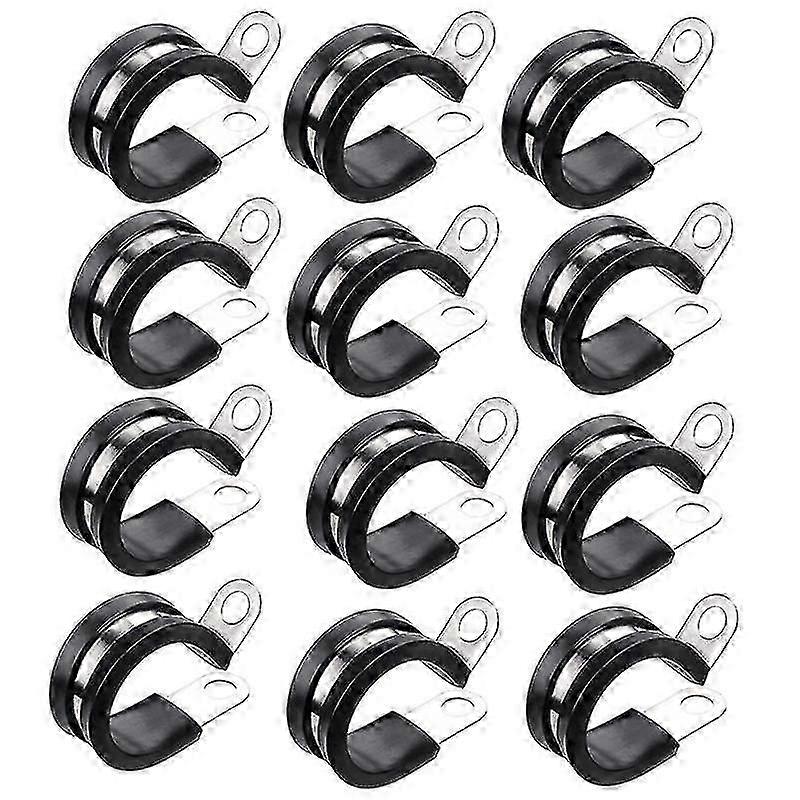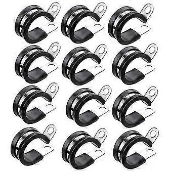 12Pcs Rubber Air Cushion Stainless Steel Cable Clamp R-Shaped Tube Clamp with Rubber Strip 6 Sizes