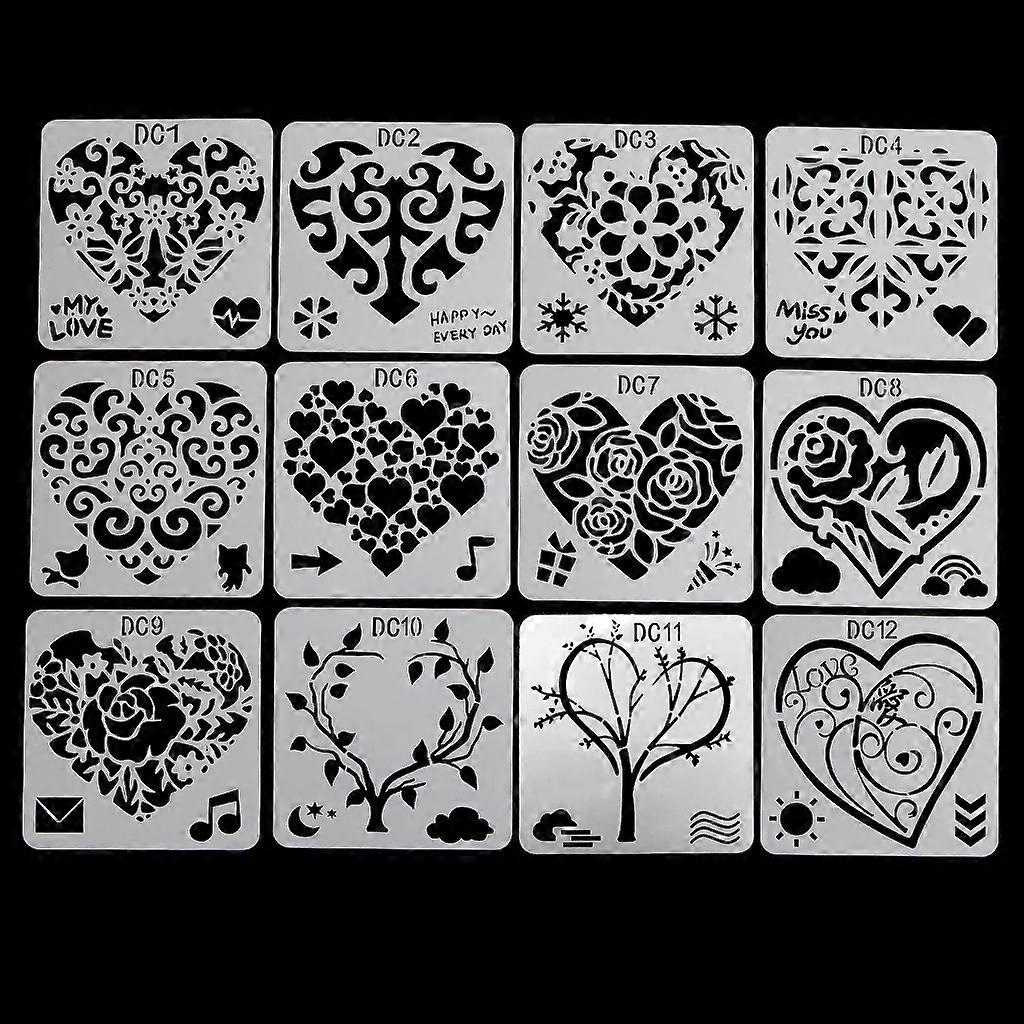 12Pcs Flower Heart Drawing Molds Plastic Children Painting Stencils DIY Paper Ar White