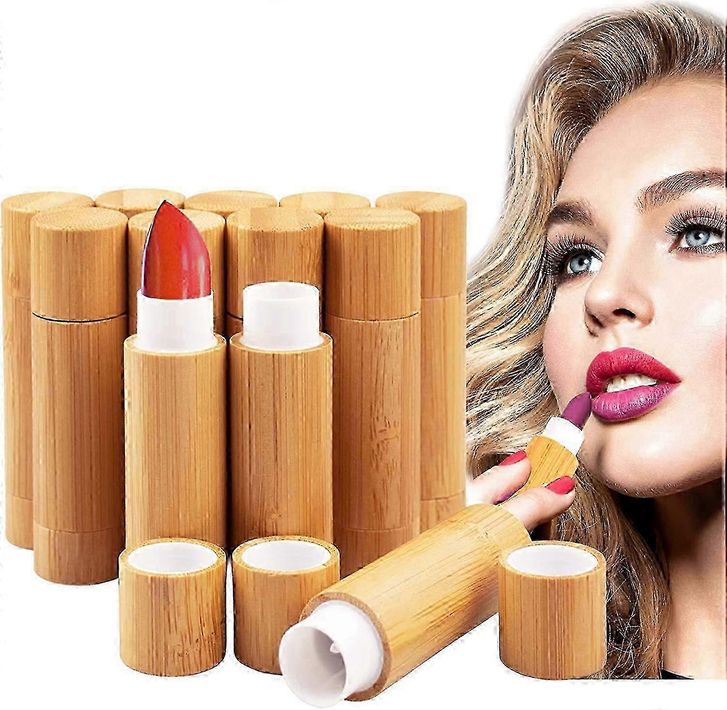 12Pcs Bamboo Empty Lipstick Tubes 5.5g Refillable DIY Lip Balm Tube Containers