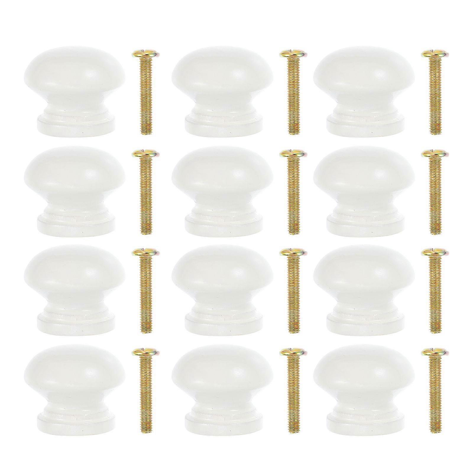 12pcs Wooden Handles Simple Pull Handles Home Door Knobs for Drawer with Screws