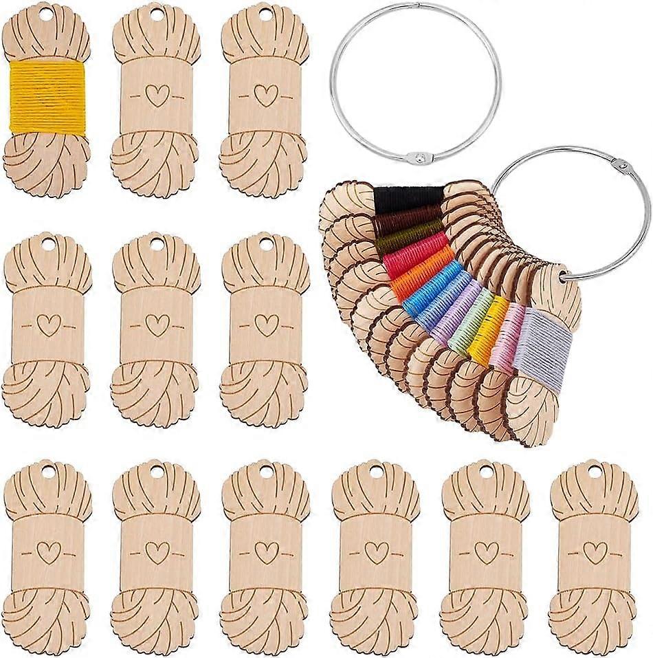 12Pcs Wooden Blank Yarn Peg Creative Woolen Thread Winding Boards Knitting Yarn Holder with Iron Ring for Embroidery Needlework Macrame Weaving Cord a