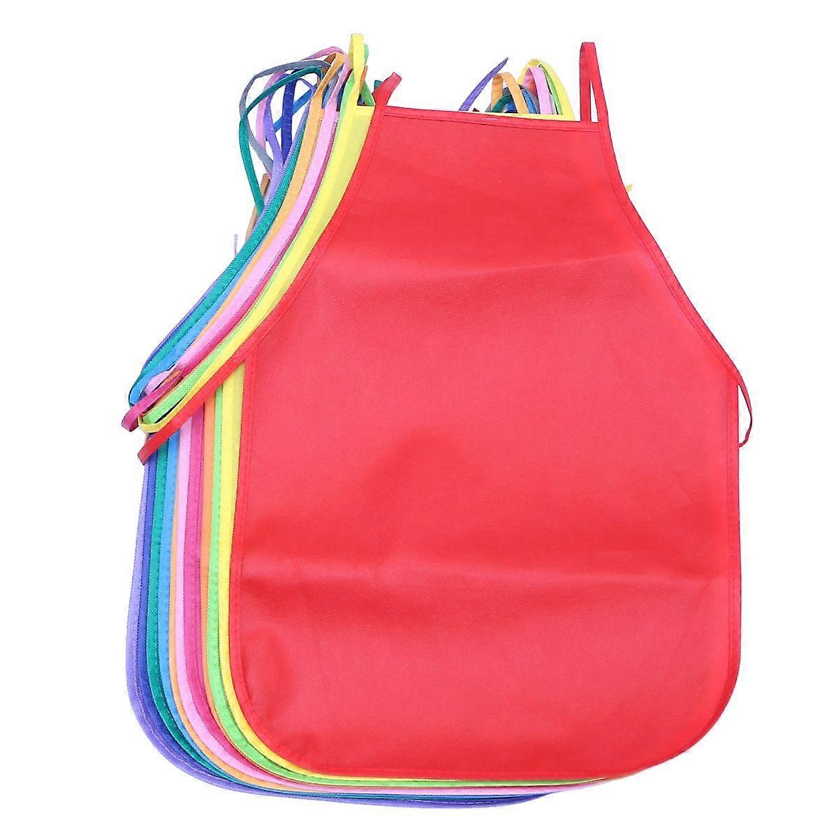 12pcs Children's Artists Aprons Non-woven Fabric Disposable Painting Aprons for Class Crafts Art Painting Activities (Red + Green + Light Yellow + Ora