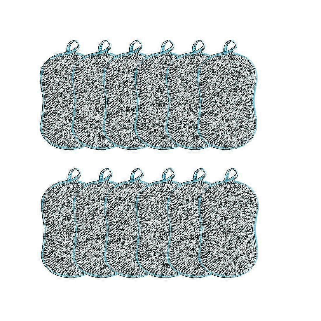 12pcs Home Double-sided Cleaning Sponge Scouring Pad Cleaning Cloth Reusable Microfiber Household K-YGWL