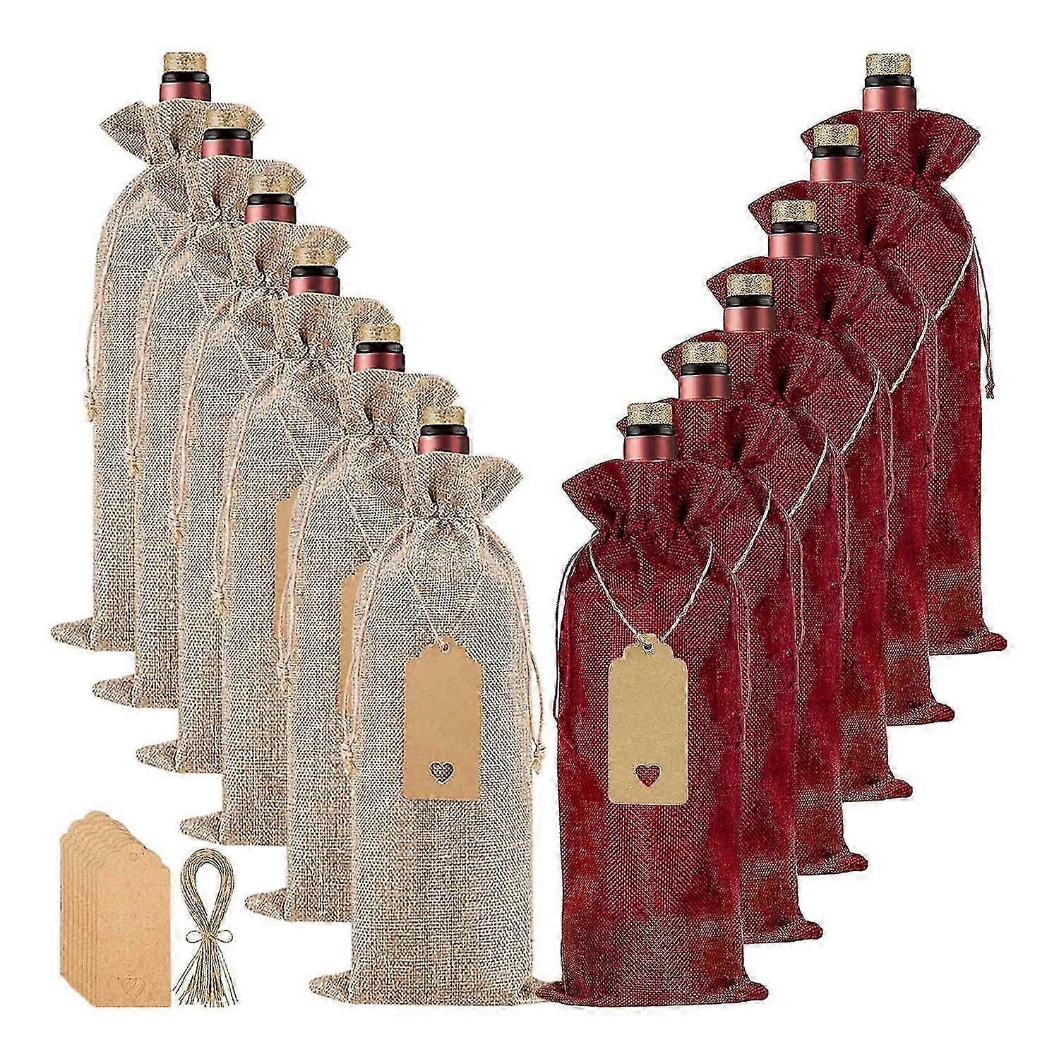 12pcs Burlap Wine Bags And 12pcs Gift Tags, Reusable Bags With Drawstrings, Wine Bottle Bags, Wine