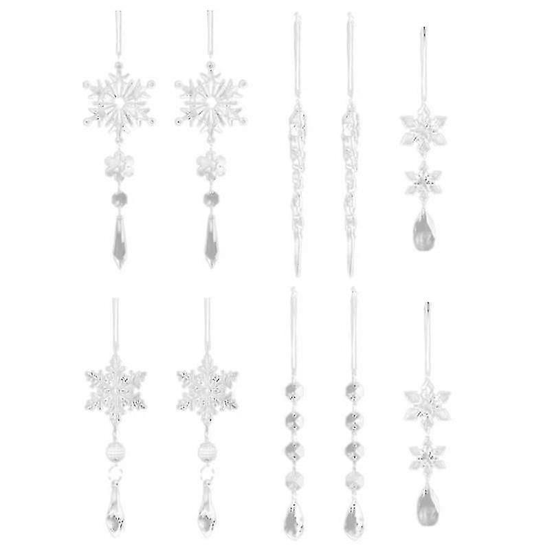 12Pcs Christmas Icicle Snowflake Decoration Clear Acrylic Indoor Outdoor Festive Holiday Xmas Tree H