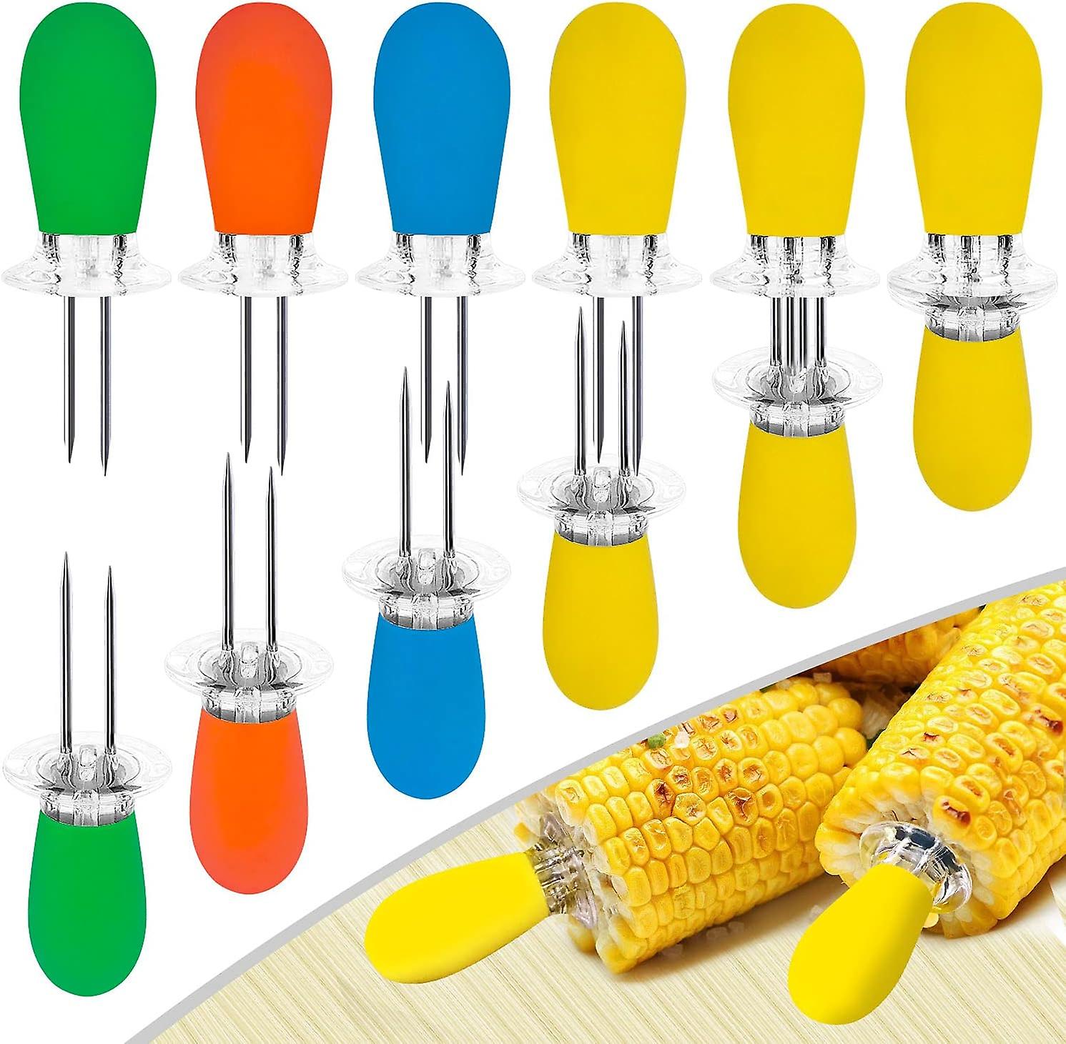 12pcs/6 Pairs Corn Clips, Stainless Steel Corn Cob Clips Corn Cob BBQ Double Fork Sweet Corn Clips, 4 Colors