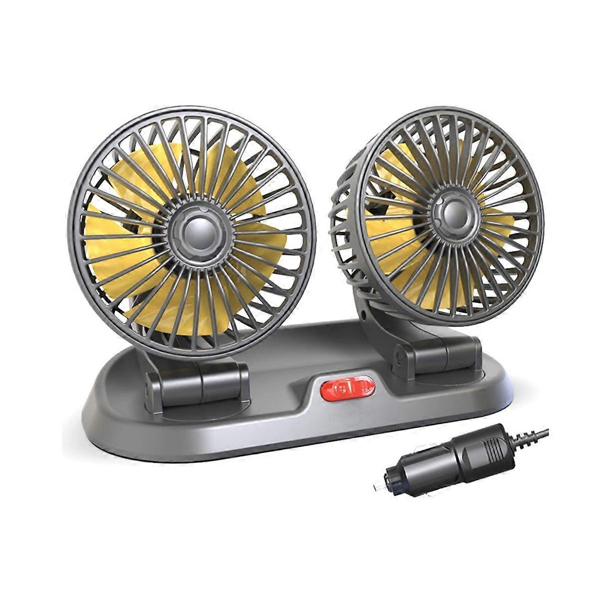12V Car Fan Double Head Fan Portable Auto Cooling Fan Cooling Big Wind Electric Fan Car Folding Fan