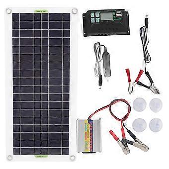 12V to 220V 30W Solar Charging Panel 220W Solar Inverter Battery Charger Kit for Camping Hiking 100A