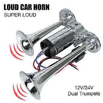 12V/24V 110dB Dual Trumpets Car Air Horn Set For Motorcycle Boat Truck Super Loud Electric Speaker with Wires and Relay