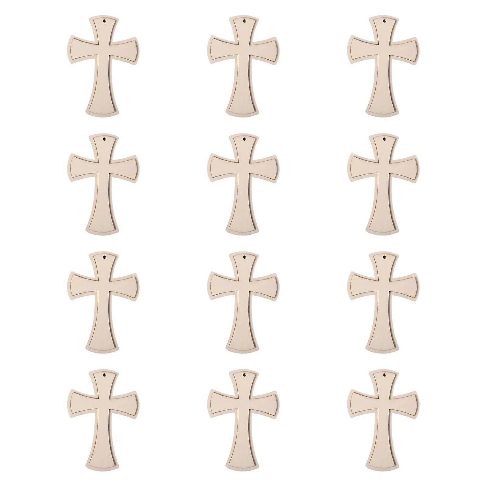 12x Wooden Crosses for Crafts, Unfinished cross Shaped Wooden Pieces for Doors