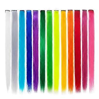 13 τεμ χρωματιστό ζωηρό κλιπ κόμματος σε επεκτάσεις μαλλιών 55cm ευθεία συνθετικές τρέσες, ουράνιο τόξο