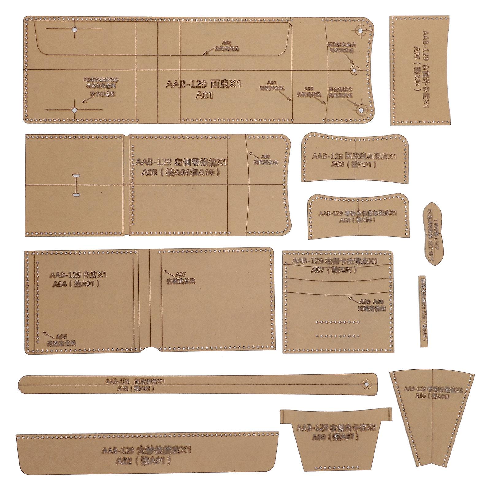 13Pcs Acrylic Template DIY Hand‑Made Short Wallet Leather Pattern Mold Craft Tools