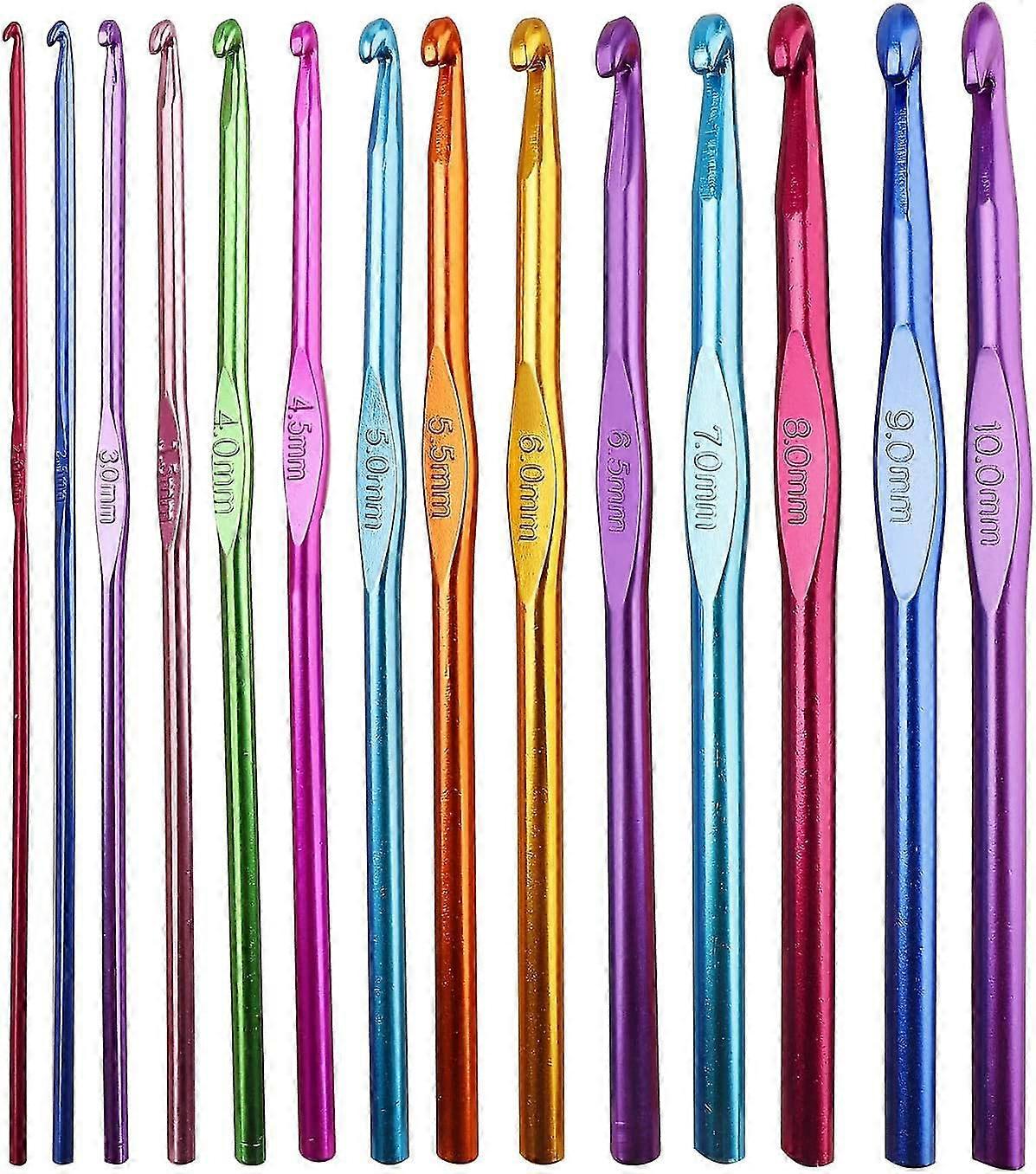 14 Pieces Aluminum Crochet Hooks, Multicolor Knitting Needles Craft Making Tool Yarn Set 2mm-10mm